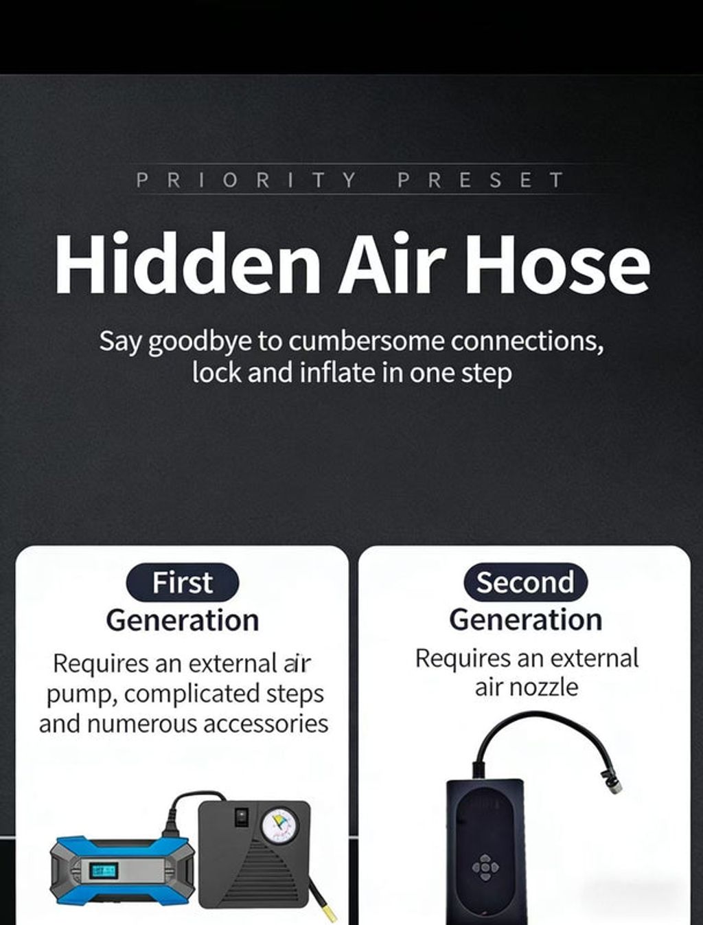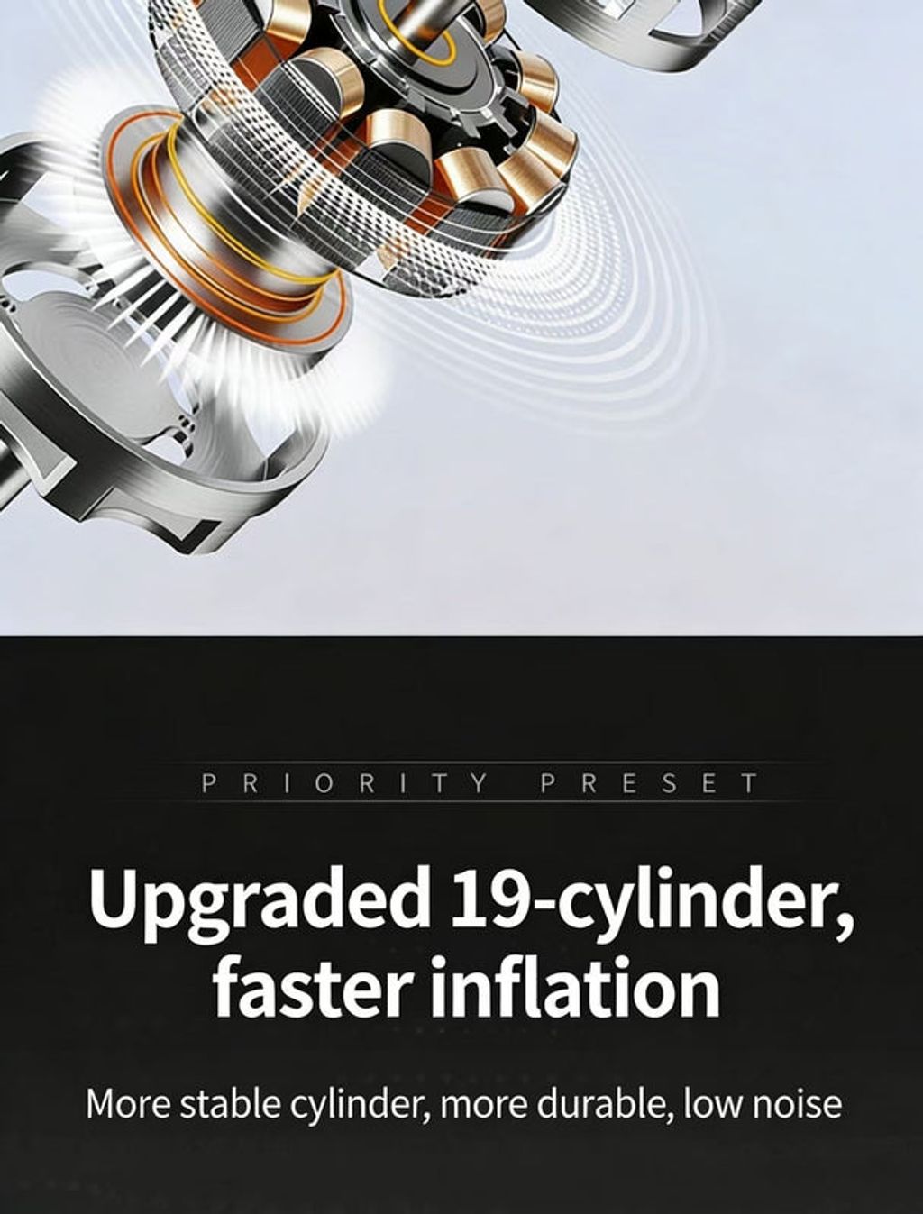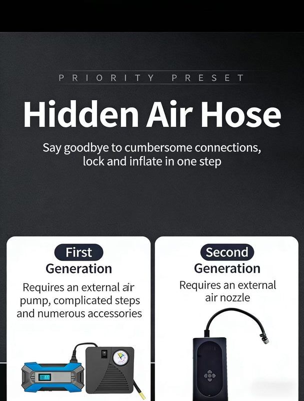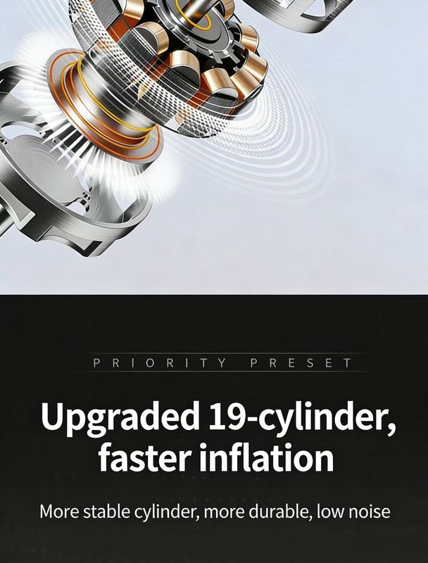 • Fast Inflation: 19-cylinder permanent magnet motor + hidden air hose, faster and more stable inflation with easy operation